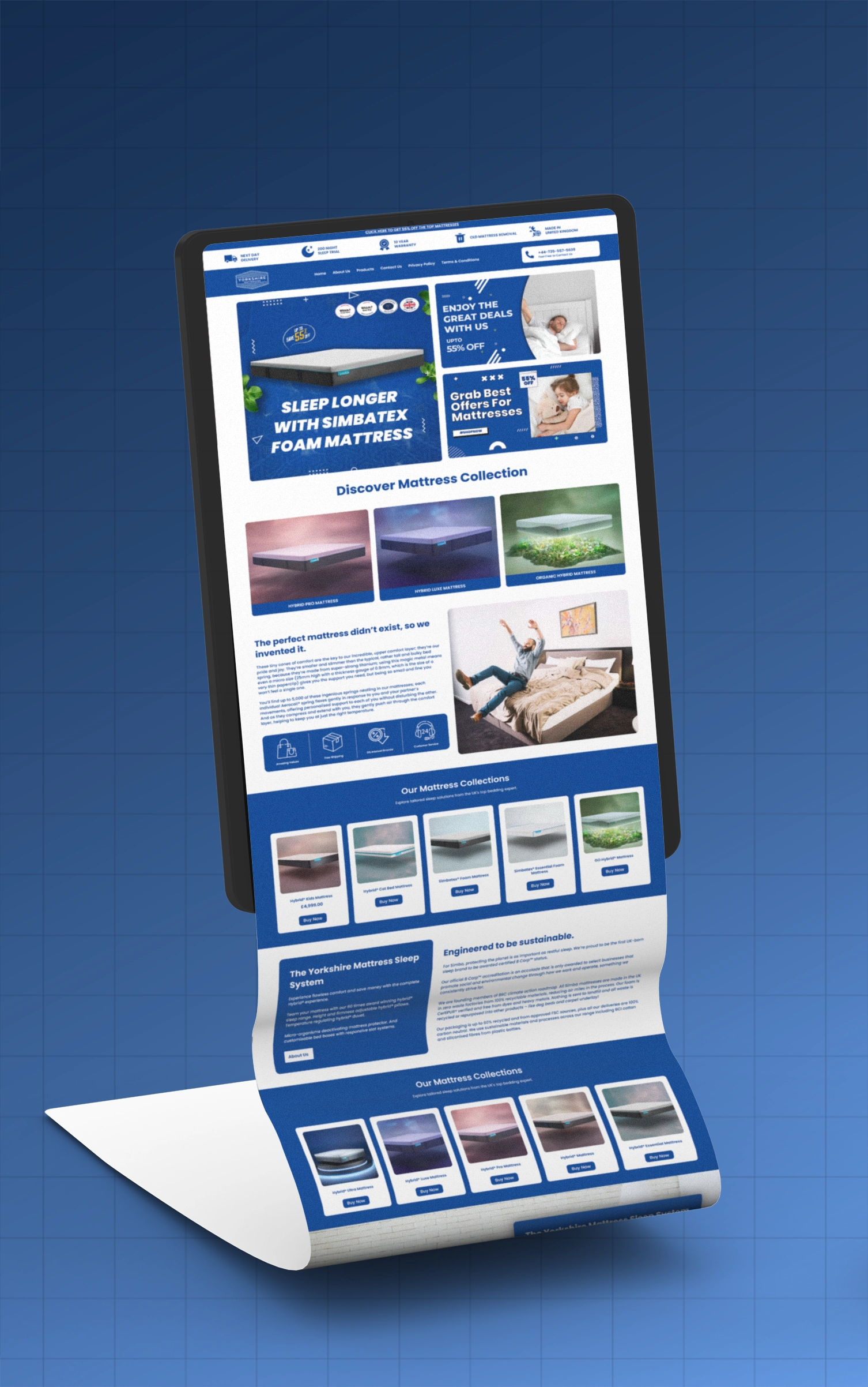 I developed a modern, eco-conscious e-commerce website for Yorkshire Mattresses, a UK-based brand specializing in innovative hybrid mattresses with Aerocoil® spring technology, adjustable pillows, temperature-regulating duvets, protectors, and customizable bed bases — all handmade sustainably in the UK.
